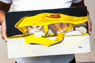 Dipingo su tele in cotone, juta o lino, tavole di legno, alluminio, carta da parati... insomma, su tutto ciò che può ricevere colore! Se avete qualche iddea o curiosità particolare sui supporti su cui desiderate un ritratto su commissione, non esitate a contattarmi.